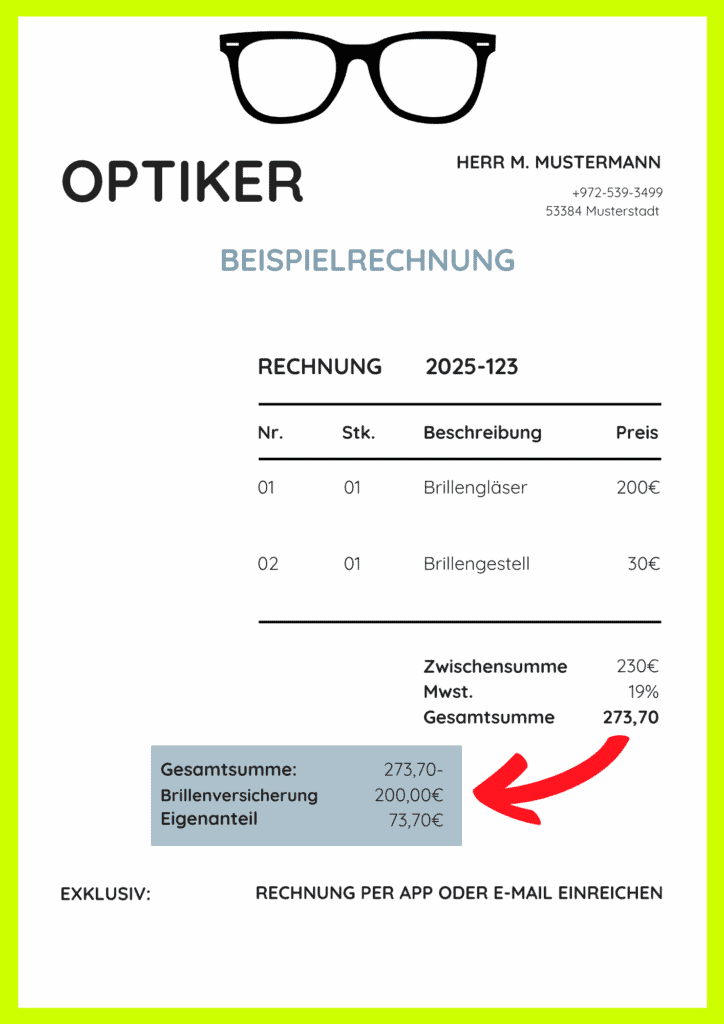 200€ Sofortauszahlung für eine Brille / Kontaktlinsen (Rechnung muss dem Versicherer vorliegen)*
